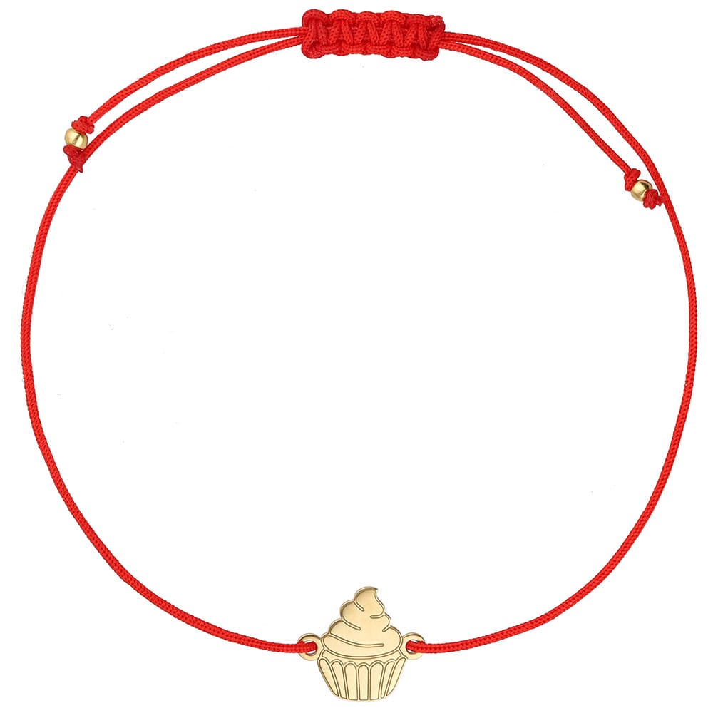 Bransoletka z celebrytką w kształcie babeczki na czerwonym sznurku to niezwykle uroczy dodatek dla wielbicielek słodkości.