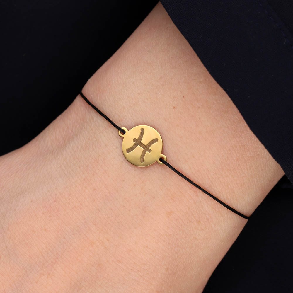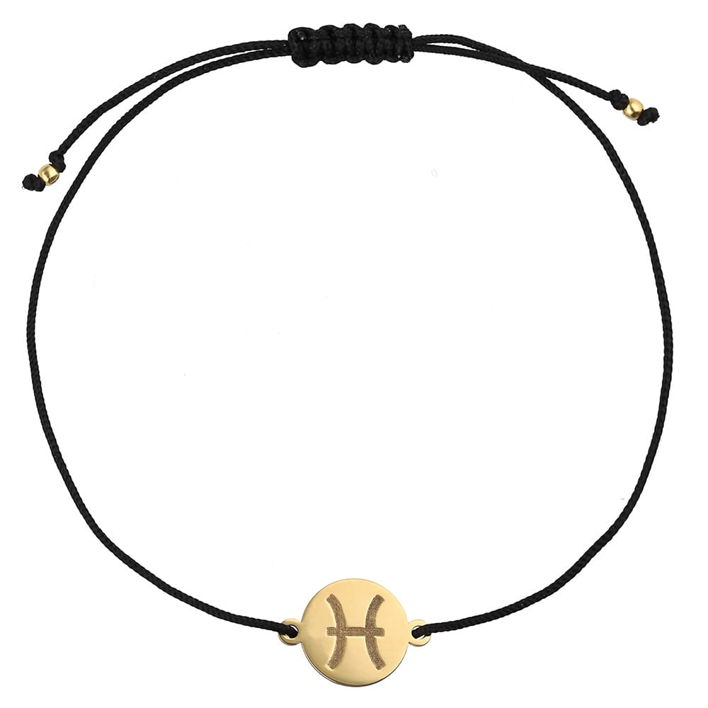 Damska bransoletka na sznurku Zodiak Ryby. Bransoletka na czarnym sznurku z celebrytką z grawerem znaku zodiaku Ryby.