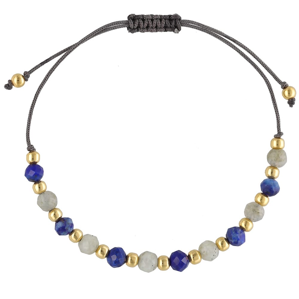 Bransoletka z lapis lazuli i labradorytem na szarym sznurku to połączenie wygody i elegancji. Zachwyć się blaskiem efektownie oszlifowanych kamieni naturalnych, odbijających światło przy każdym ruchu nadgarstka.