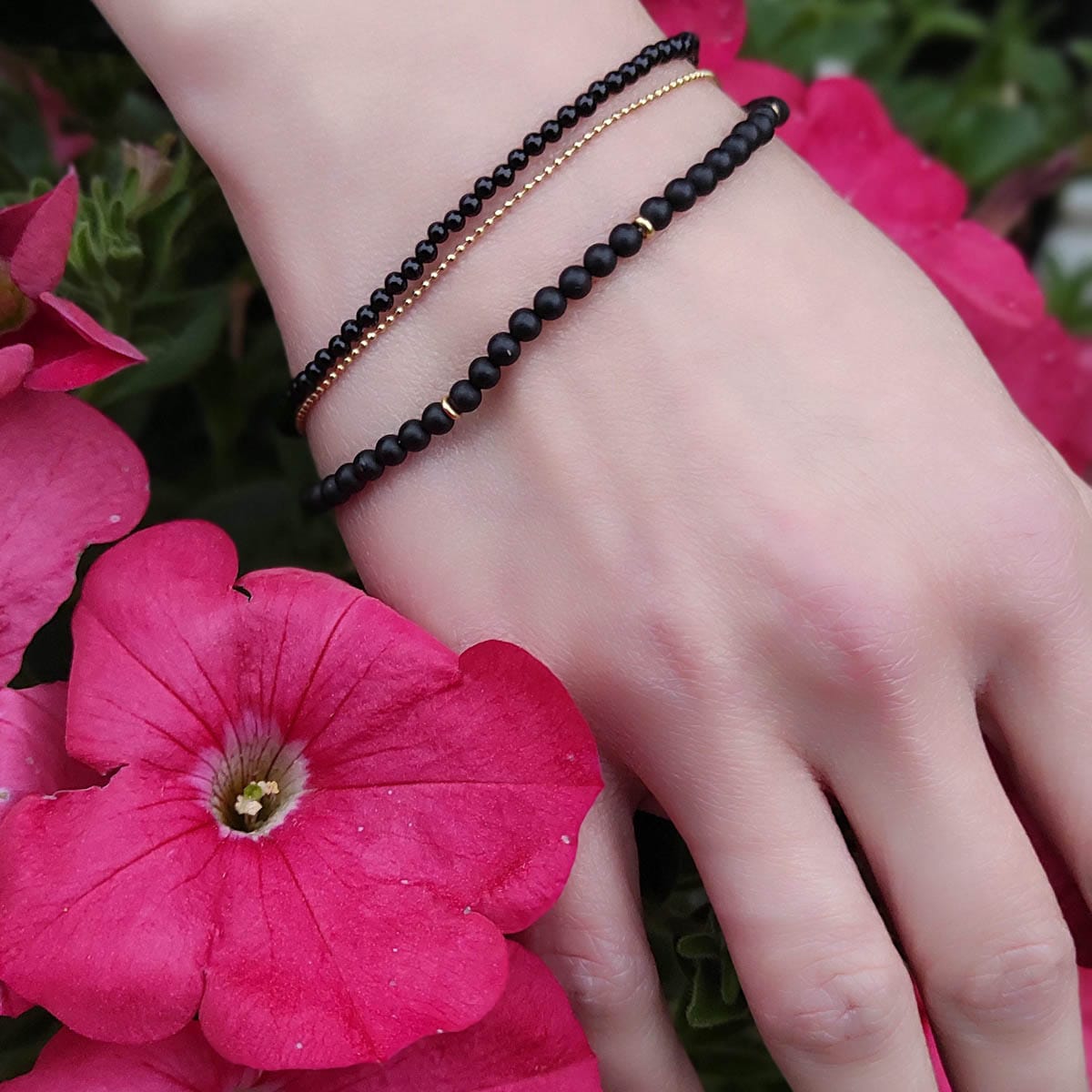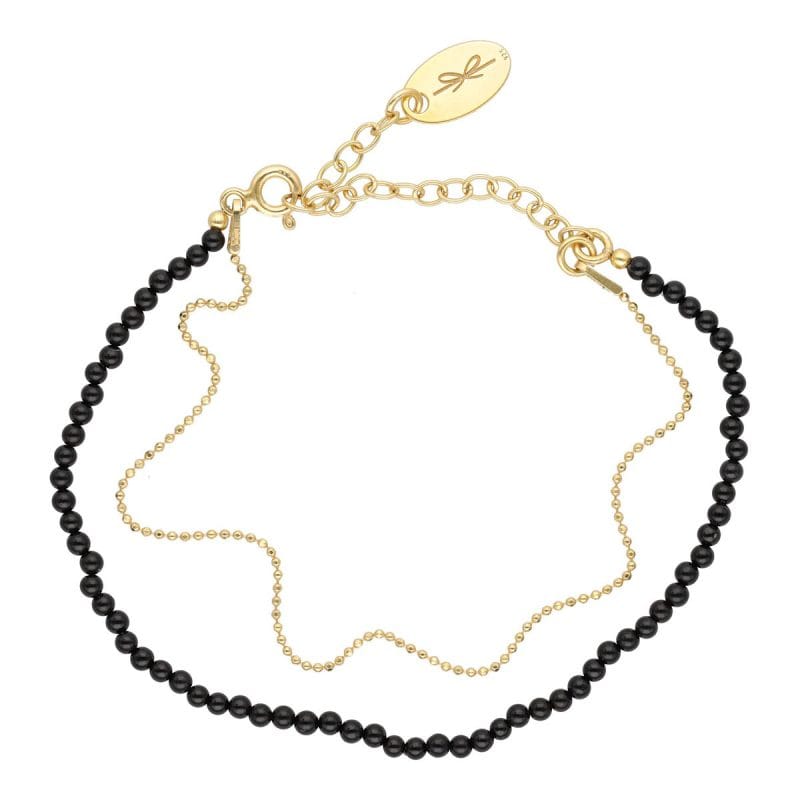 Bransoletka srebrna pozłacana z onyksem BLACK CHAIN to wyjątkowy dodatek, elegancki i niesamowity. Ta podwójna bransoletka srebrna pozłacana z czarnego onyksu w rozmiarze kulek 2mm jest nie tylko piękna, ale również wykonana z najwyższej jakości materiałów.