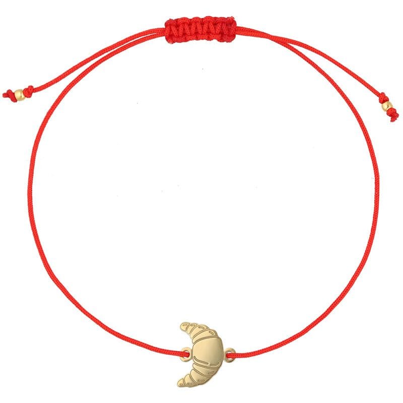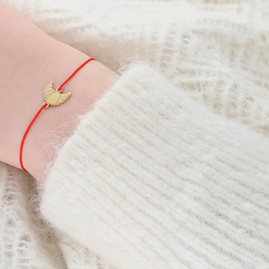 Bransoletka z celebrytką w kształcie rogalika na czerwonym sznurku to niezwykle uroczy dodatek dla wielbicielek słodkości.