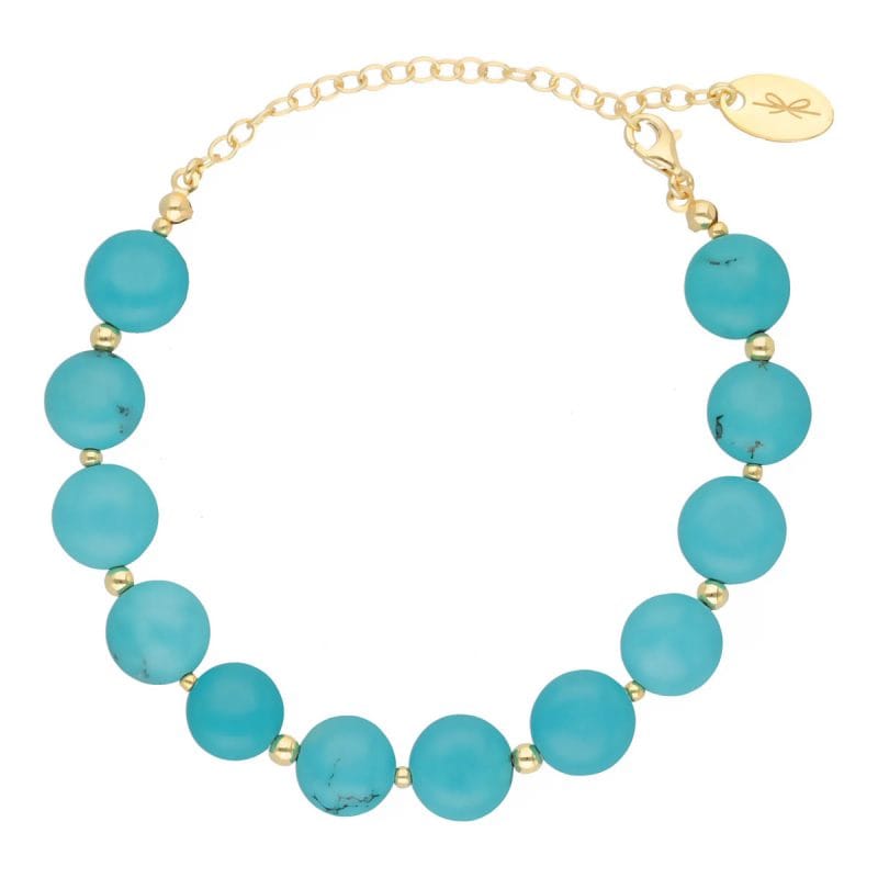 Bransoletka jest wykończona elementami wykonanymi ze srebra próby 925 powleczonego 24-karatowym złotem. Grubość powłoki wynosi około 1µm, co gwarantuje jej trwałość i odporność na zarysowania. Pozłacane elementy dodają bransoletce elegancji i szlachetności, a także doskonale komponują się z intensywnym kolorem turkusu.