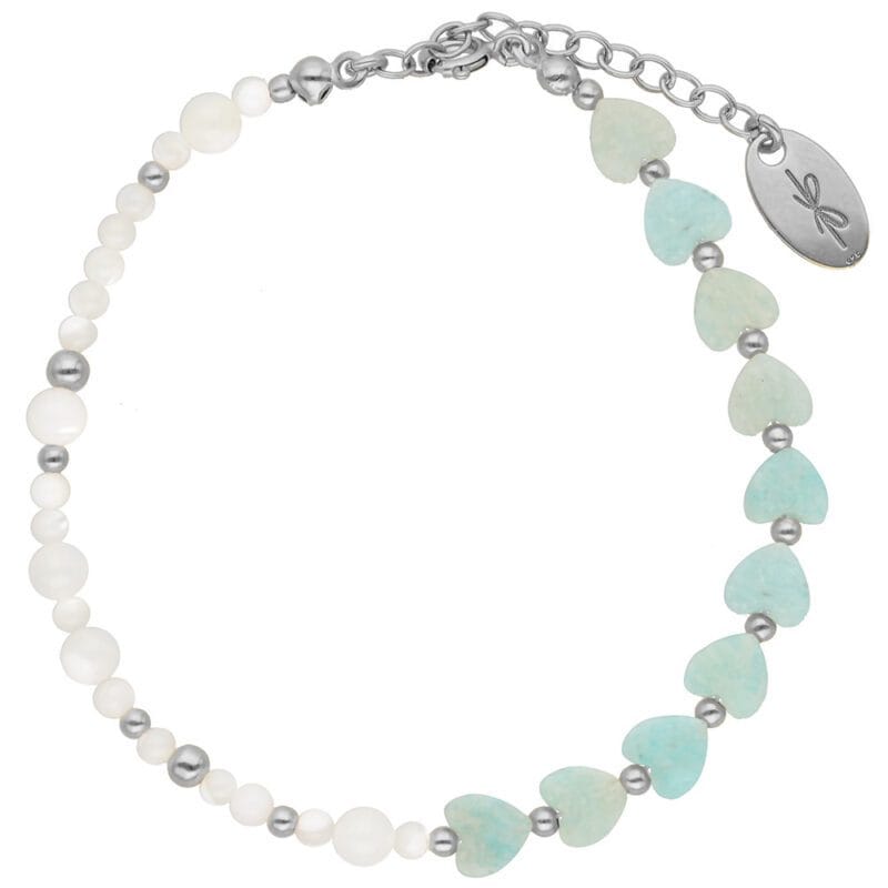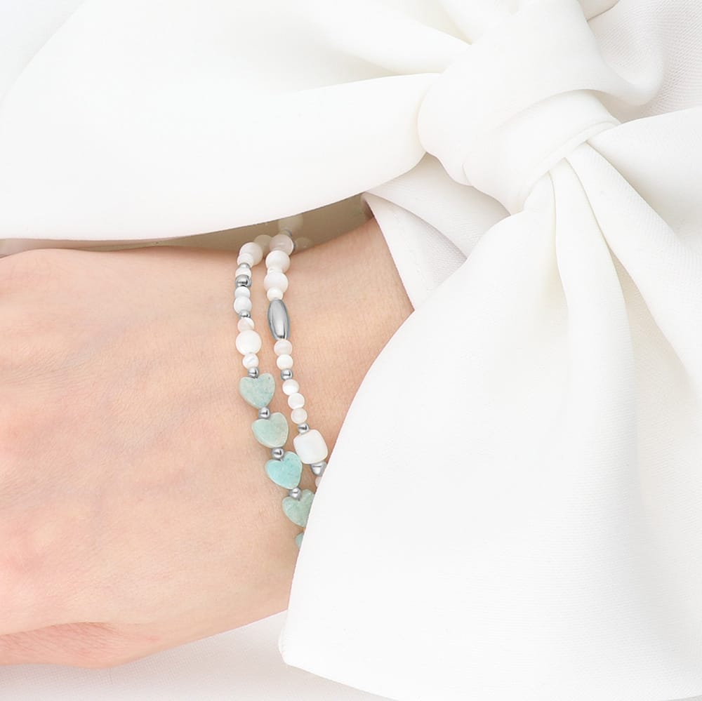 Bransoletka z serduszkami z amazonitu i masą perłową – subtelny dodatek w uroczym wydaniu