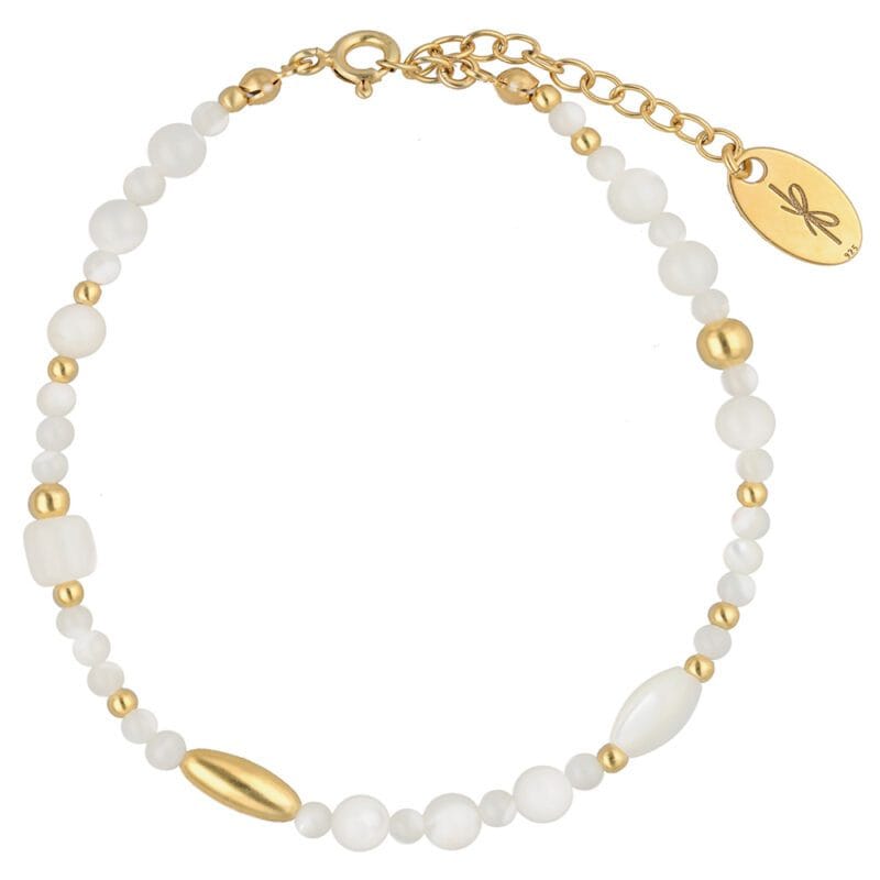 Subtelna, a zarazem niezwykle efektowna bransoletka z naturalnej masy perłowej zestawionej z pozłacanym srebrem, to propozycja dla osób kochających ponadczasową elegancję i klasyczne dodatki. Masa perłowa od wieków uważana jest za symbol czystości, harmonii i ochrony. Osadzona w biżuterii pięknie odbija światło, a starannie dobrane kształty i rozmiary elementów tworzą przyciągającą oko niebanalną całość. Bransoletka posiada wygodną przedłużkę, co pozwala na regulację długości, dzięki czemu zawsze idealnie dopasowuje się do nadgarstka, zapewniając komfort noszenia.