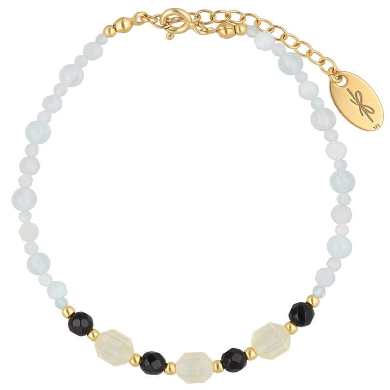 bransoletka z akwamarynem, cytrynem i onyksem pozłacana
