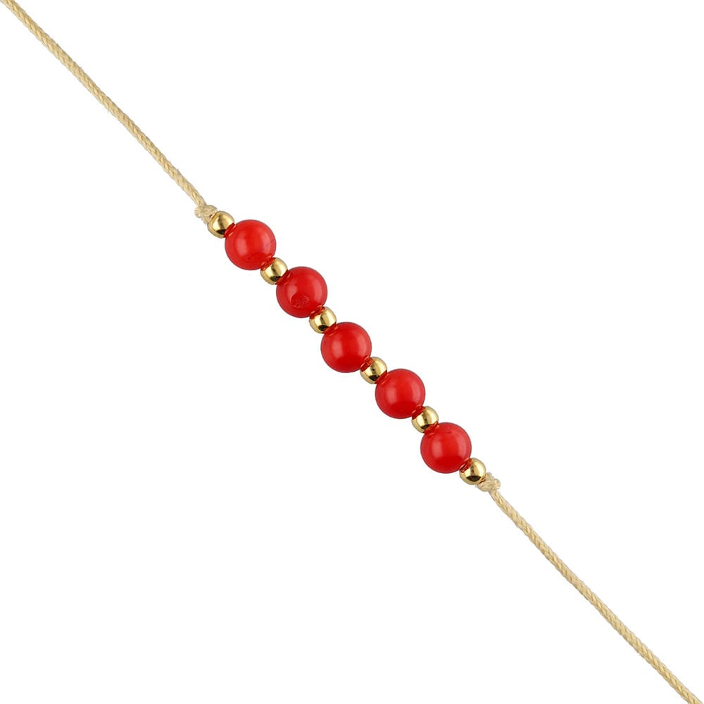Bransoletka z koralem na beżowym sznurku to idealna propozycja dla osób, które lubią czerwone dodatki lub dla tych, które urodziły się pod znakiem zodiaku Byk.
