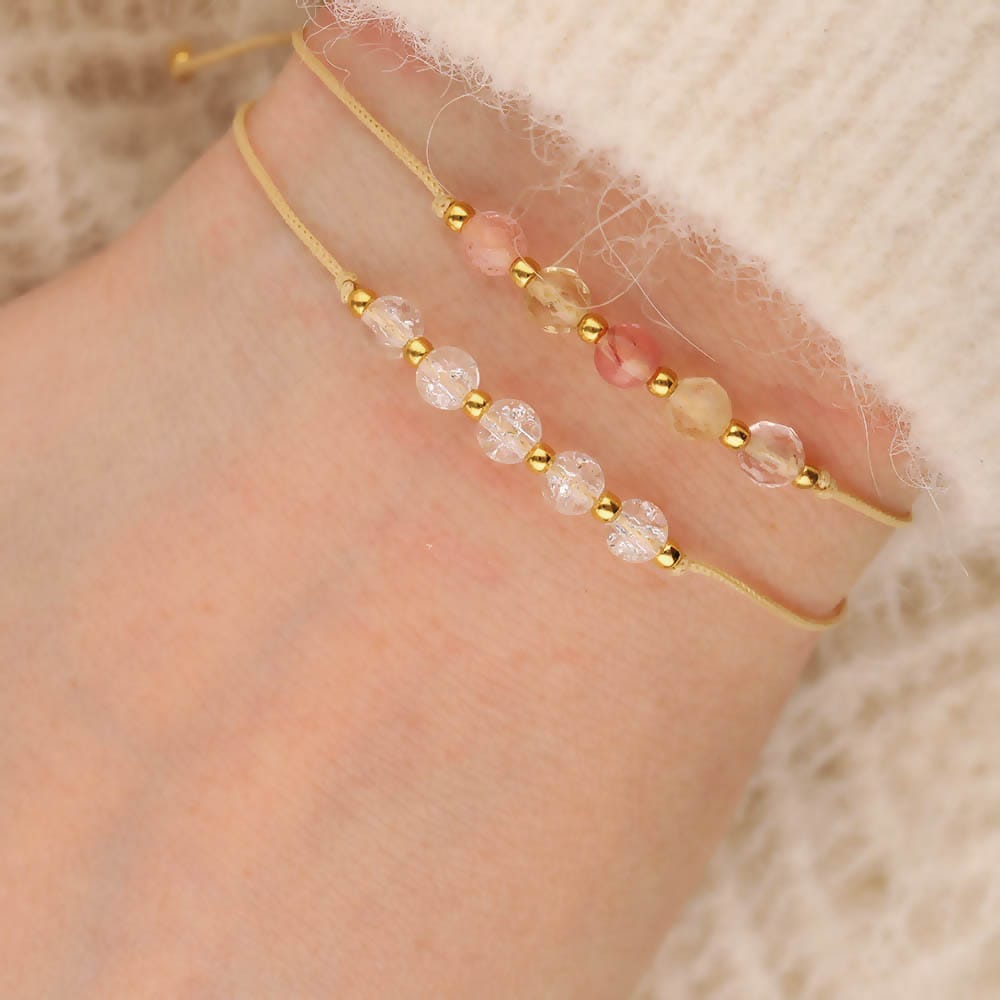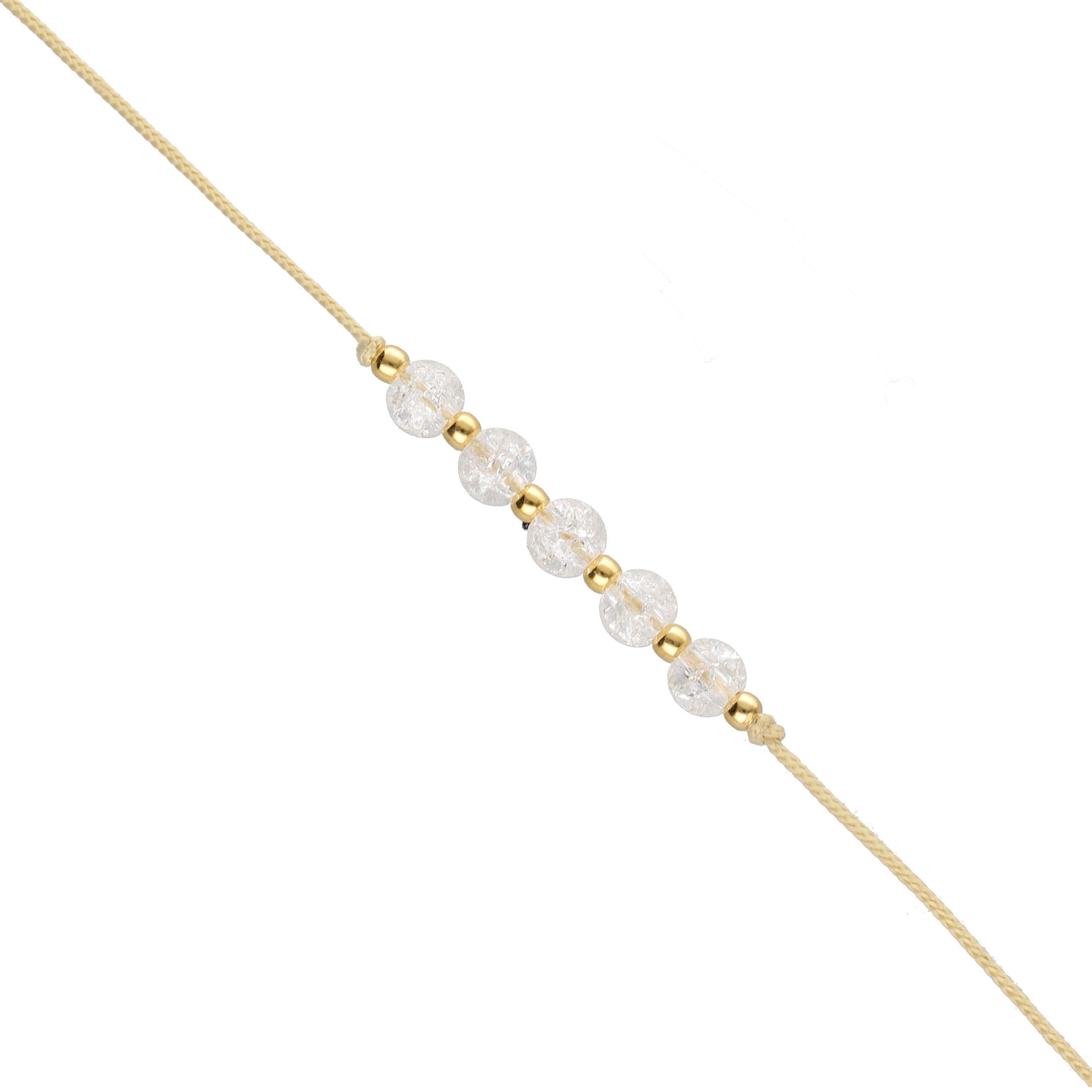 Damska bransoletka beżowy sznurek kwarc srebrna pozłacana SIMPLE