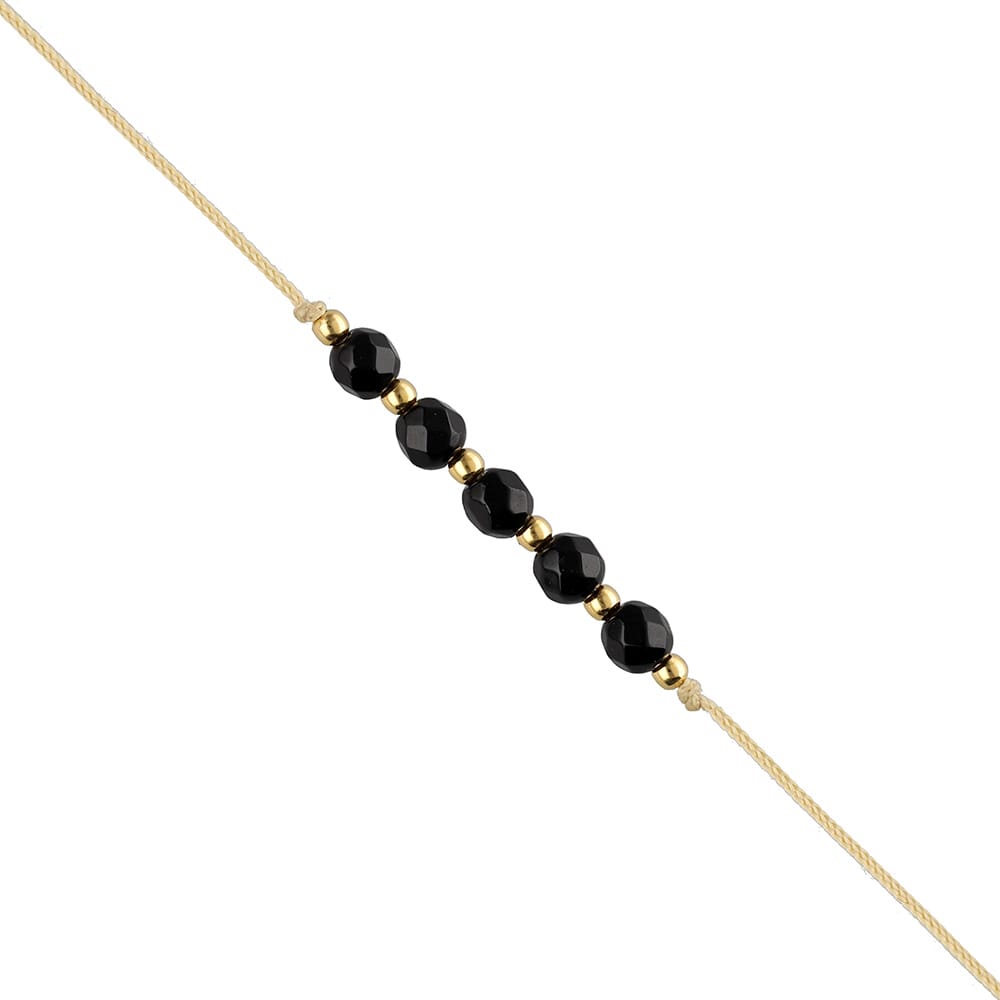 Sznurkowa bransoletka z onyksem z kuleczkami ze srebra pozłacanego 925