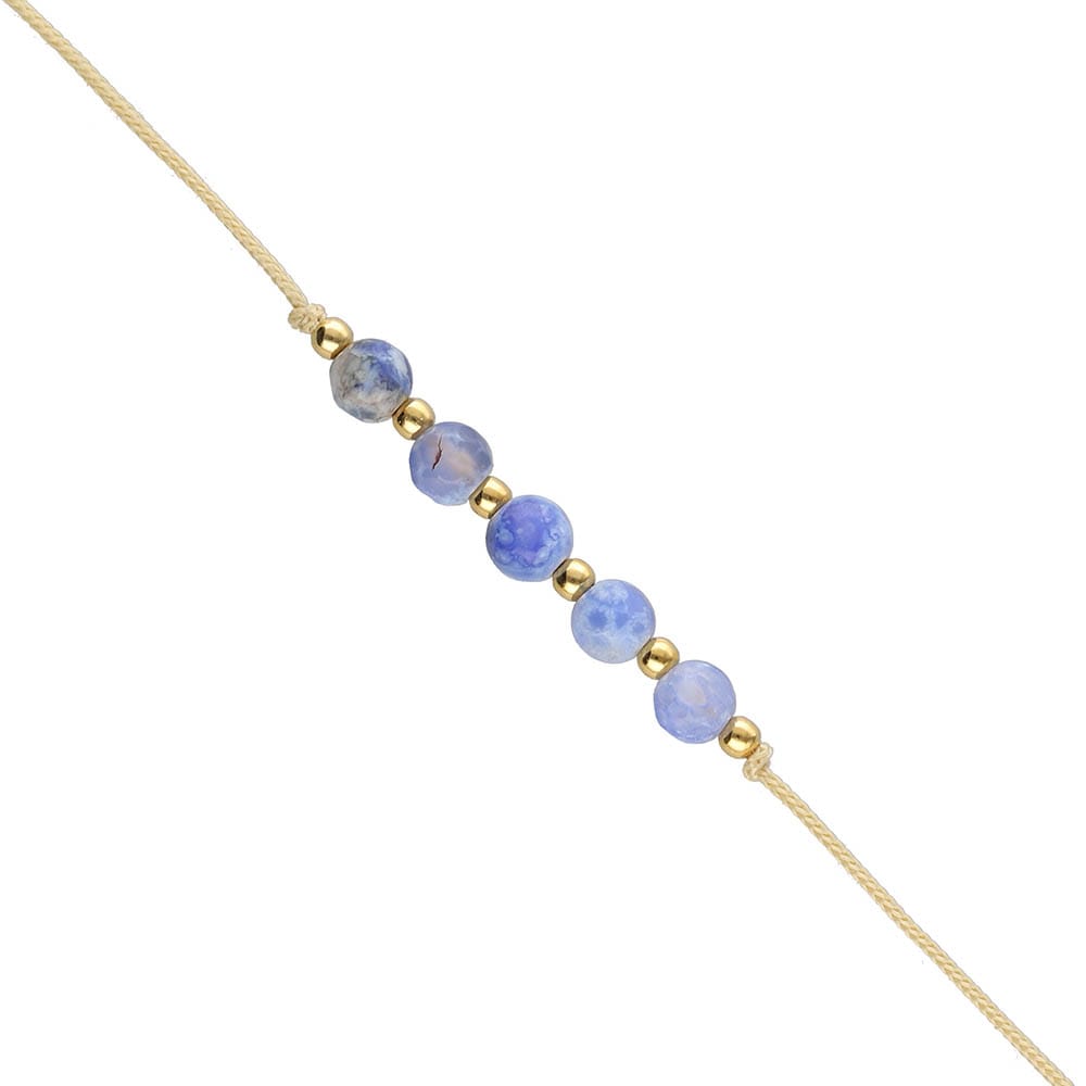 Bransoletka została wykonana z beżowego sznureczka, na którym umieszczono agat – kamień szczęścia dla Bliźniąt i Skorpiona. Kamień ten ma kształt fasetowanej kulki o średnicy 4mm.