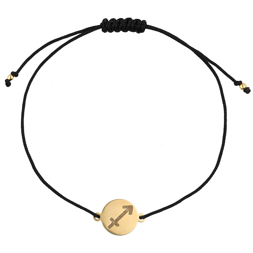 Damska bransoletka na sznurku Strzelec Zodiak srebrna pozłacana