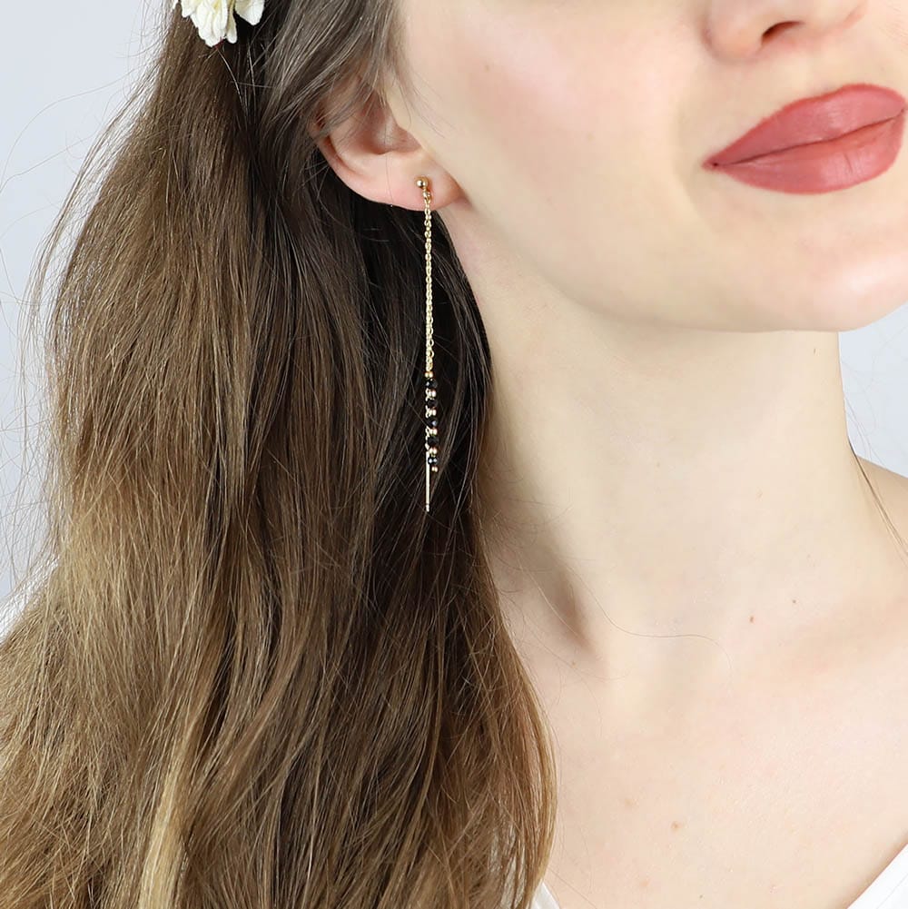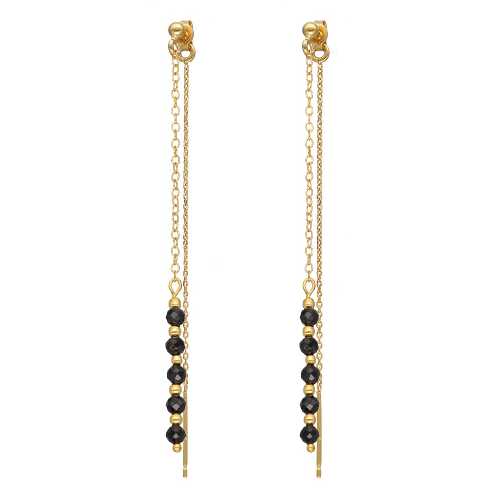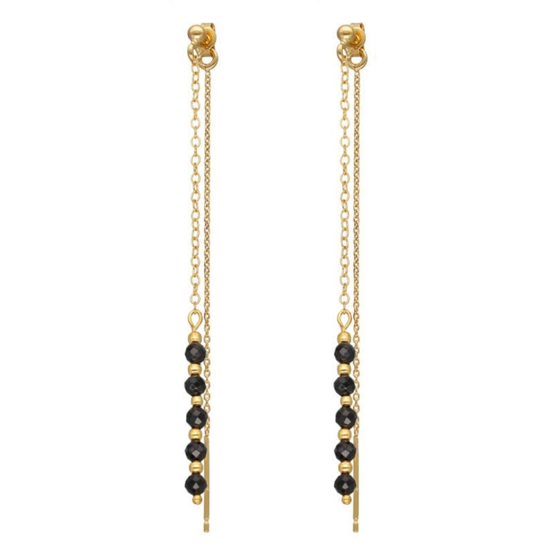 Długie wiszące kolczyki pozłacane sztyfty czarne ze spinelem