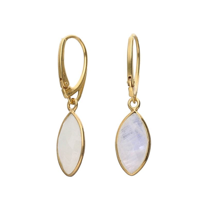 Kolczyki wykonane ze srebra próby 925 pokrytego złotem, zakończone kamieniami księżycowymi w oprawie.