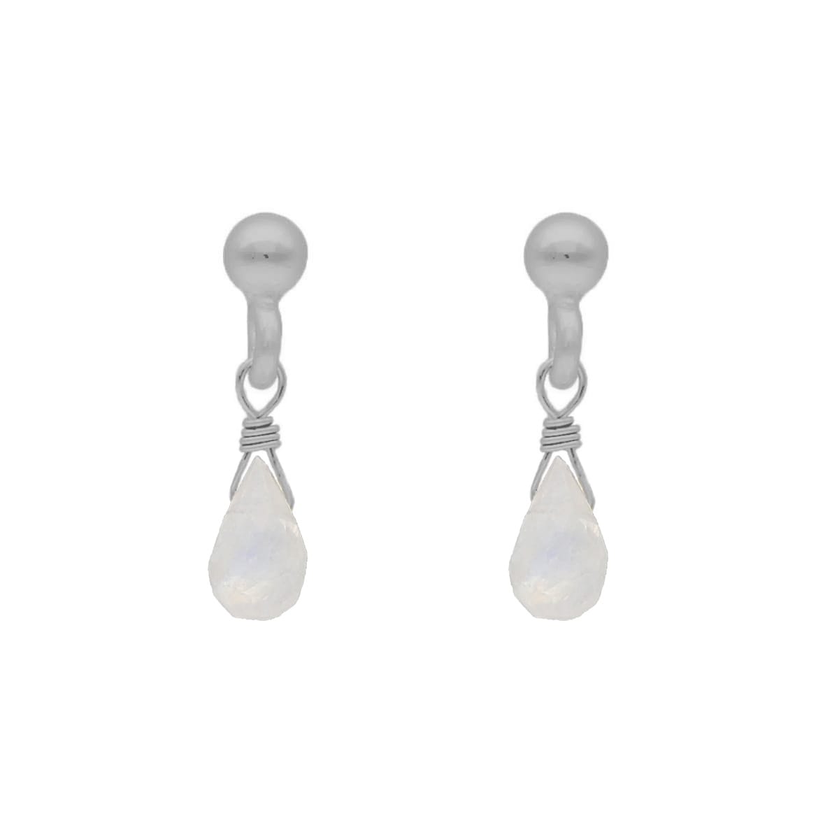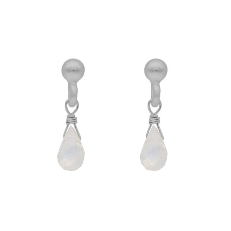 Kolczyk sztyft z kulką 3mm i podwieszoną pojedynczą brioletą naturalnego kamienia księżycowego