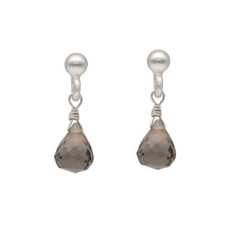 Kolczyk sztyft z kulką 3mm i podwieszoną pojedynczą brioletą dymnego kwarcu