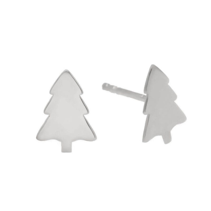 Kolczyki na sztyftach w kształcie choinek, wykonane ze srebra próby 925, które dodatkowo zostało zabezpieczone warstwą rodu.