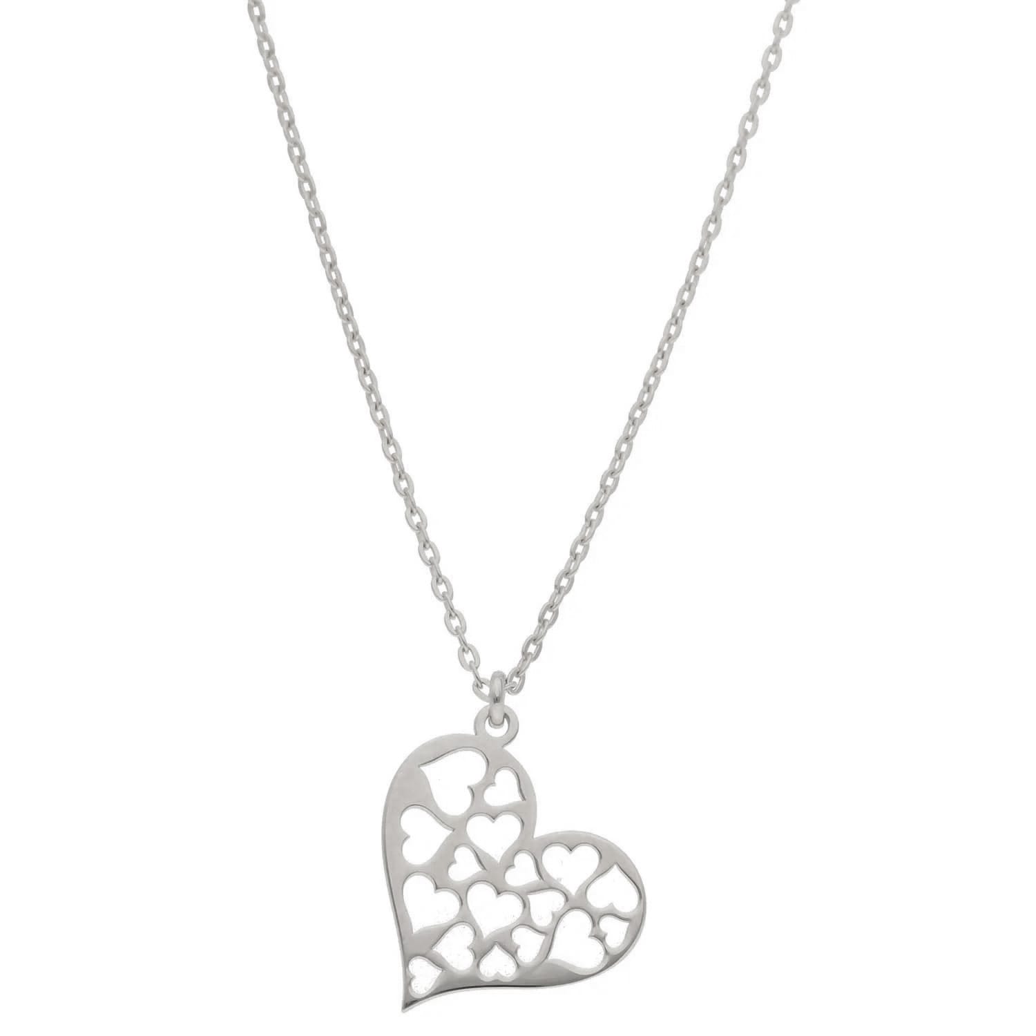 Damski naszyjnik srebrny celebrytka serce z wyciętymi mniejszymi sercami na łańcuszku ankier