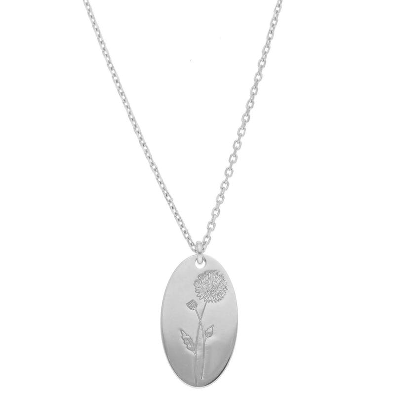 Naszyjnik damski srebrny z kolekcji BIRTHDAY FLOWERS z grawerem chryzantemy – kwiatu symbolizującego miesiąc listopad. Naszyjnik wykonany został ze srebra próby 925 i zabezpieczony warstwą rodu.