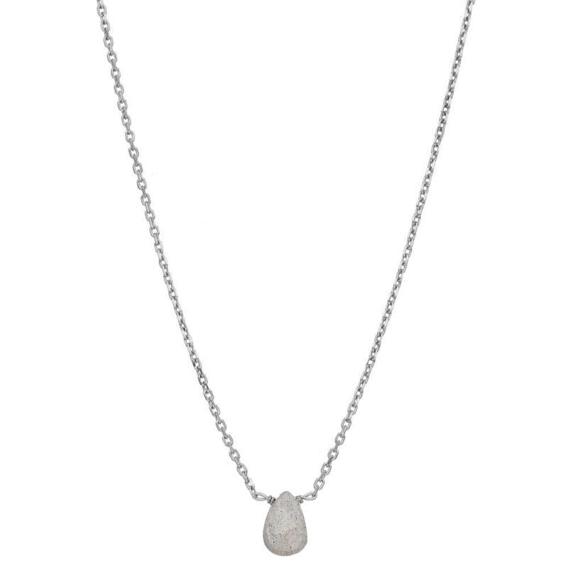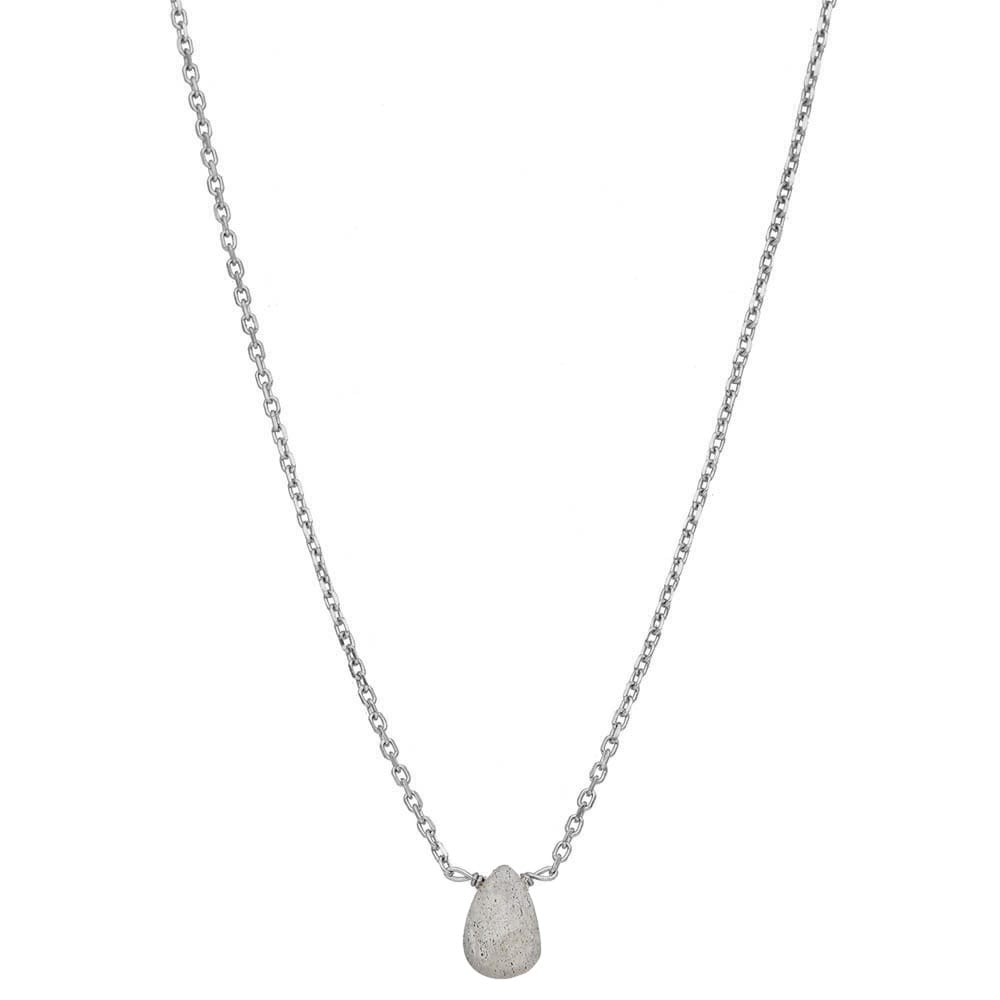 Delikatny naszyjnik srebrny z labradorytem w kształcie kropli, wykonany ze srebra próby 925, zabezpieczonego warstwą rodu, co gwarantuje mu trwałość i zwiększoną odporność na zarysowania. Naszyjnik stanowi doskonałe uzupełnienie stylizacji dla miłośniczek minimalistycznej biżuterii.