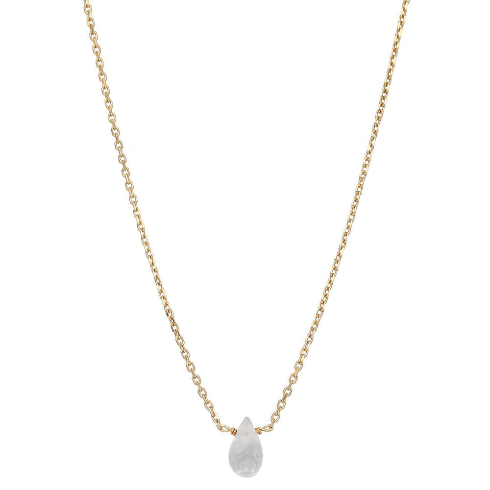 Delikatny naszyjnik z topazem w kształcie kropli, wykonany ze srebra próby 925, powleczonego żółtym złotem o grubości powłoki około 1µm. Kamień naturalny oszlifowany został w sposób podkreślający jego niezwykły blask. Naszyjnik stanowi doskonałe uzupełnienie stylizacji dla miłośniczek minimalistycznej biżuterii.