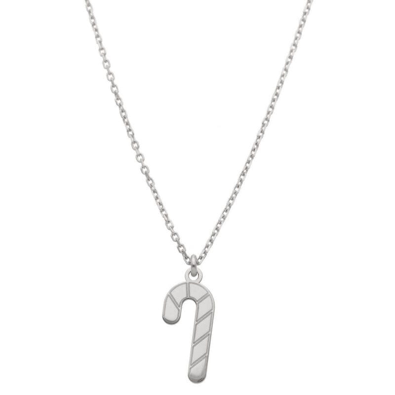 Świąteczny naszyjnik z cukrową laską, wykonany ze srebra próby 925. Całość zabezpieczona warstwą rodu, która chroni przed utlenieniem i matowieniem srebra.